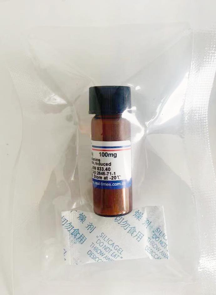 含有25 mg NADPH粉末玻璃瓶中加入0.5 ml或1 ml 10 mM Tris-HCl pH8.0,徹底溶解,即配成50 mg/ml(60 mM)或25 mg/ml(30 mM) NADPH溶液;溶液-20℃可以貯存2周,-80℃可以貯存2個月??梢愿鶕?jù)需要適量分裝成小管-80℃貯存,每次取一管使用,避免污染和減少凍融次數(shù)。