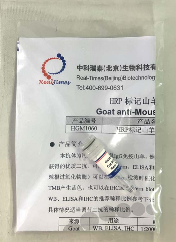 本抗體為用純化的小鼠IgG免疫山羊,然后用親和純化柱對獲得的抗血清進行純化而獲得的優(yōu)質二抗,可用于Western、ELISA和IHC等實驗。HRP(horseradish