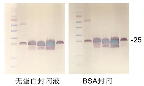 注意:使用本產(chǎn)品,PVDF膜和NC膜使用推薦封閉時(shí)間,經(jīng)多種抗體的測(cè)試封閉效果顯著優(yōu)于常規(guī)的BSA封閉1 h。對(duì)于一些背景非常高的抗體,可以嘗試延長(zhǎng)封閉時(shí)間。如有特殊需要,也可4℃封閉過(guò)夜。