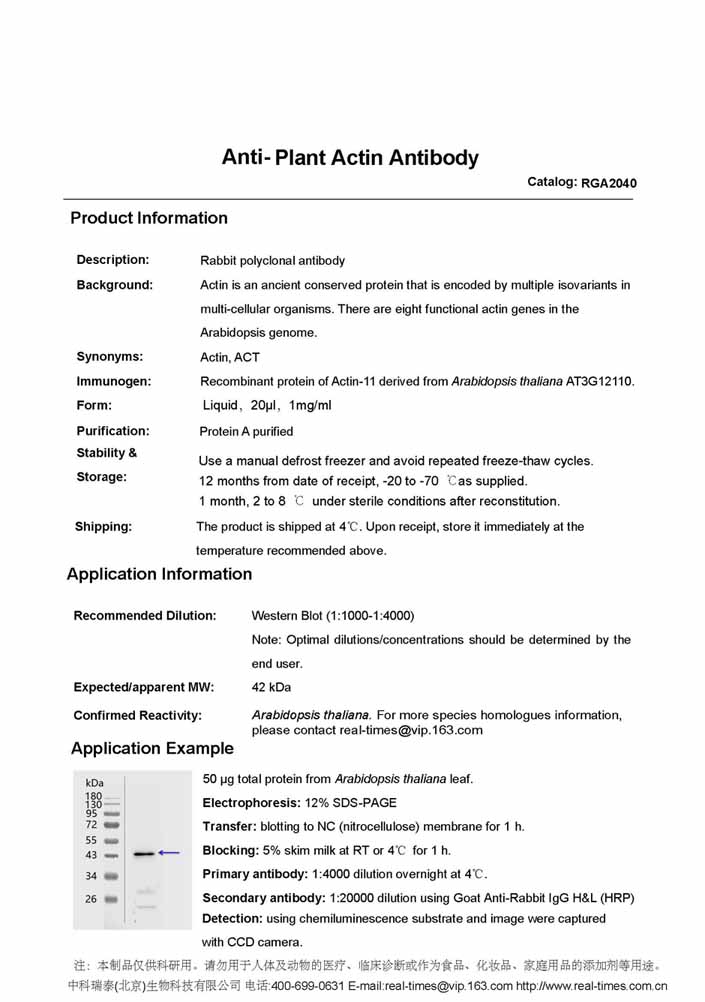 Anti-Plant Actin 抗體