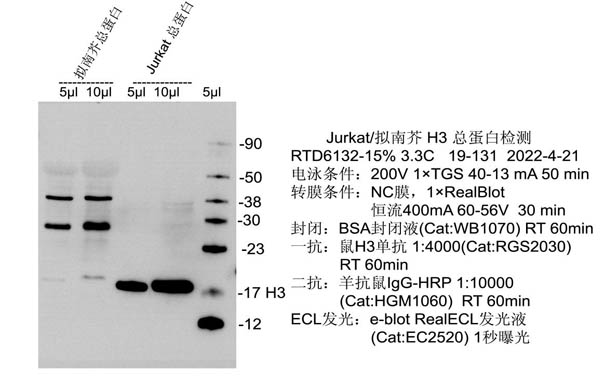 1. Western Blot雜交(ECL顯色):1:2000-5000稀釋,常溫孵育1-2 h或4℃過夜。
