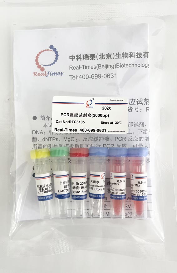 PCR MasterMix包含Taq DNA聚合酶、dNTPs、MgCl2、反應(yīng)緩沖液、PCR反應(yīng)的增強(qiáng)劑和優(yōu)化劑以及穩(wěn)定劑。使用時,只需補(bǔ)加實(shí)驗(yàn)所需的引物和模板后即可進(jìn)行PCR反應(yīng),可最大限度的減少人為誤差,具有快速簡便、穩(wěn)定性好等優(yōu)點(diǎn)。使用本試劑盒進(jìn)行PCR反應(yīng)后,PCR產(chǎn)物大小應(yīng)為2000bp。