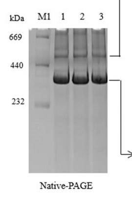 Blue/Clear Native PAGE(BN/CN-PAGE)是一種從生物樣品(質(zhì)膜,胞漿等)中非變性分離蛋白質(zhì)復(fù)合物的電泳技術(shù)。其原理是用溫和去污劑(如 DDM,digitonin)將蛋白復(fù)合體從細(xì)胞膜中以近似天然的狀態(tài)分離出來,Blue Native PAGE (BN-PAGE)是用考馬斯亮藍(lán) G-250 代替 SDS與蛋白結(jié)合而使其帶負(fù)電荷,根據(jù)蛋白分子量不同在 PAGE膠中得到分離;Clear Native PAGE(CN-PAGE)是電泳緩沖液中不加入任何染料,電泳中始終保持蛋白的天然電荷和活性狀態(tài),然而,其蛋白的分辨率要低于Blue Native PAGE。另外,BN-PAGE由于考馬斯亮藍(lán)G-250存在,使蛋白都覆蓋上負(fù)電荷,可以分離堿性蛋白(pI>7);而CN-PAGE只適合于酸性蛋白(pI<7)的分離。
