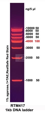 buffer,可根據(jù)實驗需要,直接取2-5μl電泳,使用方便,電泳圖像清晰。本產(chǎn)品中8條帶分為1000(50