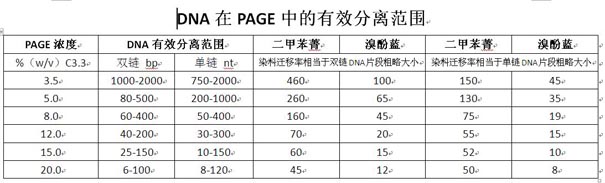 表一 TBE-PAGE分離膠配方表 (總體積5 ml,適用于1mm厚度小板膠)