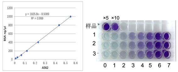BSA 標準品樣本個數(shù)為8個,復孔數(shù)3個;待測樣本個數(shù)2個,復孔數(shù)2個。