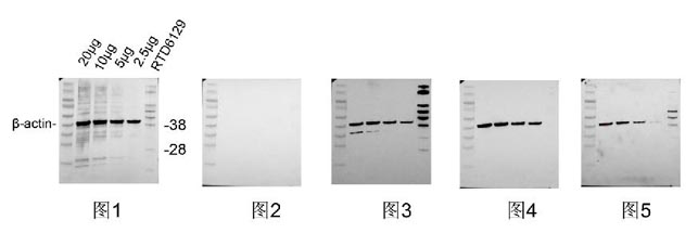 60分鐘,一抗:Santa β-Actin鼠單抗(SC-47778) 1:4000 RT 60min,羊抗鼠IgG-HRP 1:5000(貨號(hào):HGM1060) RT 60min;ECL自動(dòng)曝光6秒。